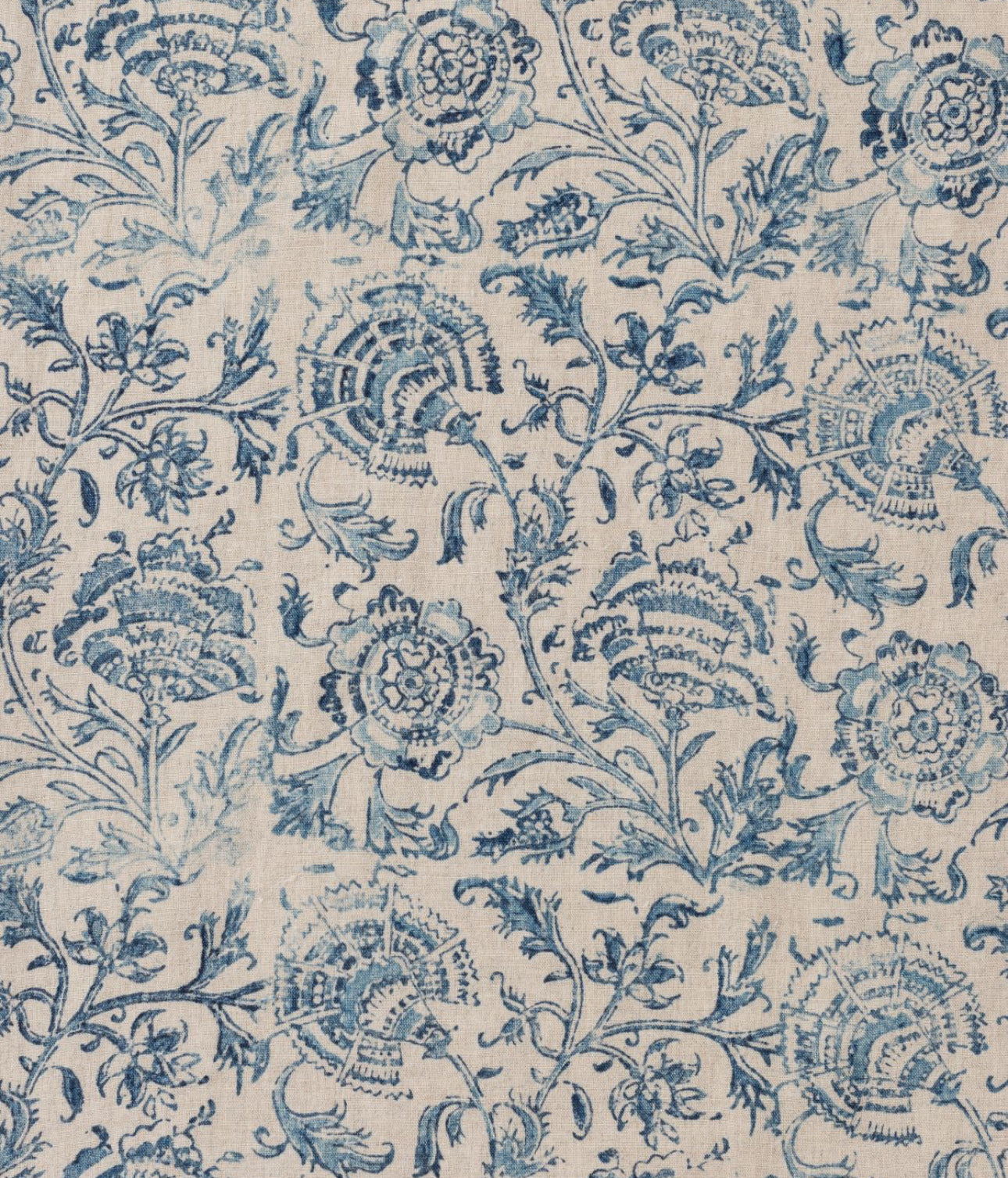 Hand printed + embroidered on Natural Linen. Print is on both sides.