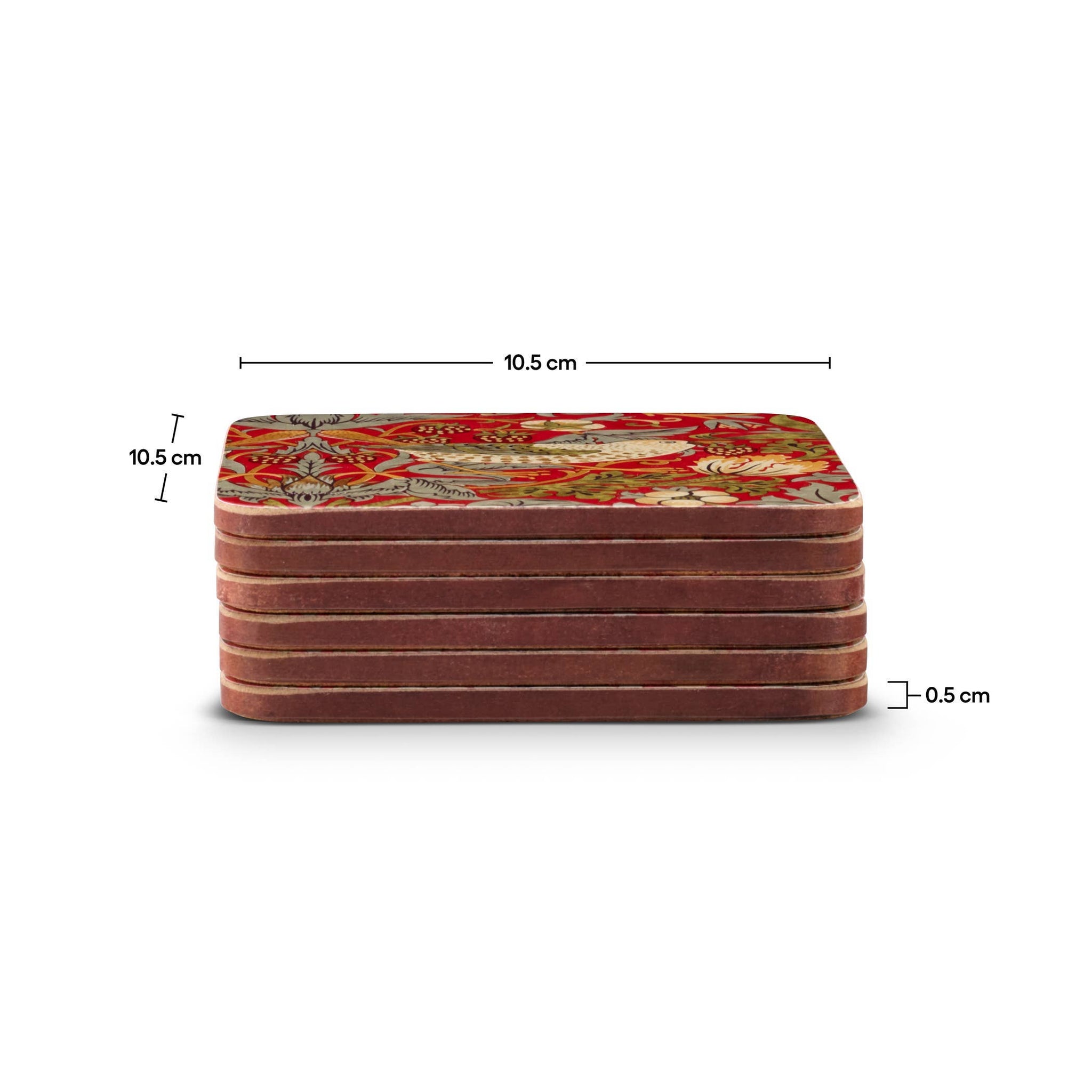 These quality coasters use a 5mm board topped with a unique and exclusive art print. Each is totally sealed with a high quality coating that is both stain and heat resistant to 212F. The coasters are then finished with a hard-wearing cork back that protects precious furniture. The intricate Strawberry Thief design forms part of the Morris & Co for Pimpernel collection. William Morris was one of the most influential designers of the nineteenth Century and through his company, Morris & Co., he produced some of the most fashionable and exciting textiles and wallpapers of his era.